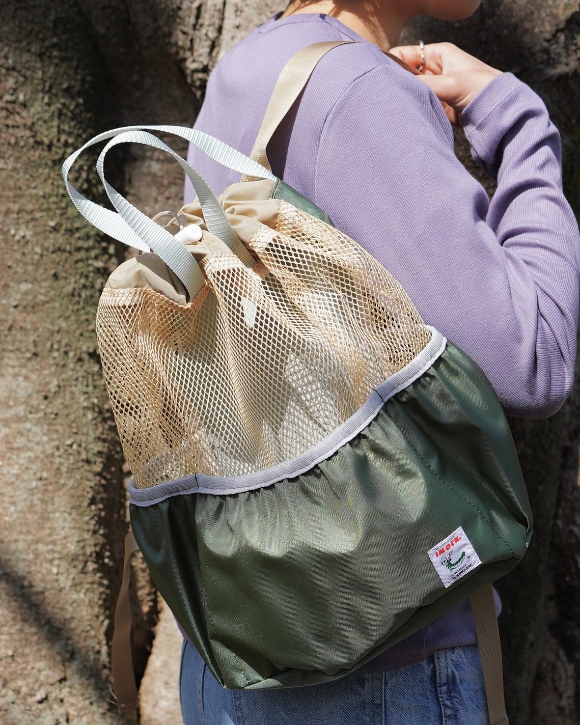• IMOCK-KOBE ZAC-MESHKINCHKU ZAC【メッシュきんちゃくザック】BEIGE×KHAKI(ベージュ×カーキ)